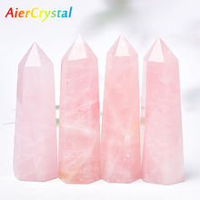 1PC Natural Rose Quartz Crystal Point Pink Crystal Column Hand Polished Hexagon Obelisk for Room Furnishing Decor Crafts Gifts