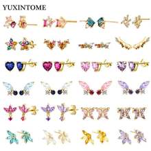 YUXINTOME 925 Sterling Silver Ear Needle Exquisite Color Crystal Zircon Luxury Stud Earrings Earrings for women Fashion Jewelry