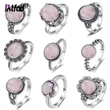 Vintage S925 Sterling Silver Ring Oval Round Natural Rose Quartz Ring Pink Stone Sun Shaped Retro Silver Fine Jewelry For Women