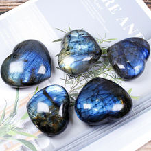 Big Crystal Heart-shaped Stone Decor Reiki Healing Labradorite Lucky Love Stone Home Decoration Collection Desktop Ornaments
