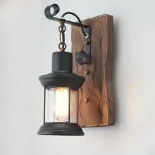 Vintage American Style Wall Lamp Wood Iron Glass Black Bed and Breakfast Hot Pot Restaurant Nostalgia Industrial Style Cafe E27