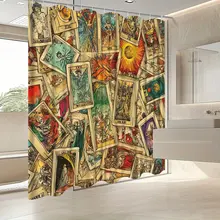 Vintage Tarot Cards Shower Curtain – Intricate Designs, Earthy Tones, 12 Hooks, Polyester, Tub & Bathroom Decor