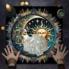 Tarot Card Tablecloth, Altar Cloth, Wheel Of The Zodiac Astrology Chart Sun Moon, Witchcraft Oracle Cards Pads, Tapestry
