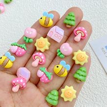 30Pcs New Cute Resin Mini Bee Tree Strawberry Sun Flatback Ornament Jewelry Making Manicure Hairwear Accessories