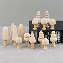 10Pcs/Set Unfinished Wooden Miniature Tree Painted Crafts Peg Dolls Wood Ornaments DIY Round Corners Kids Toy Mushroom Ornaments