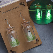 Halloween Adopt A Ghost Tiny Glow Earrings Cute Drifting Bottle Blue Green Luminous Ghost Drop Earrings Day of The Dead Jewelry